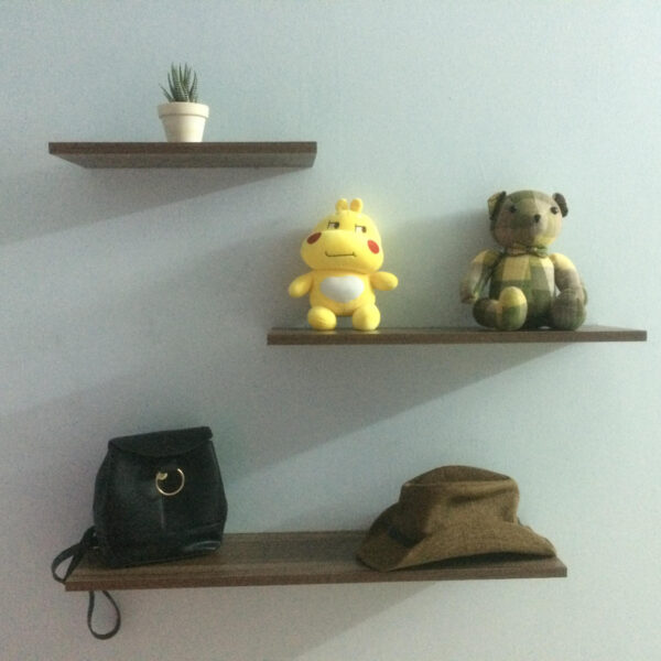 - Bộ 3 Kệ gỗ trang trí treo tường thanh ngang với 3 kích thước khác nhau. Mẫu kệ trang trí cơ bản, dễ sử dụng cho nhiều mục đích khác nhau: để sách, đồ trang trí, tạo điểm nhấn cho phòng khách hay phòng ngủ.